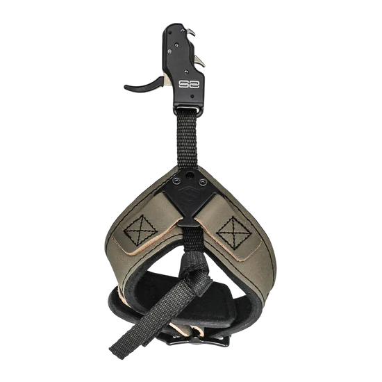 Hook style release, double sear design with micro adjust travel and tension, leather buckle strap